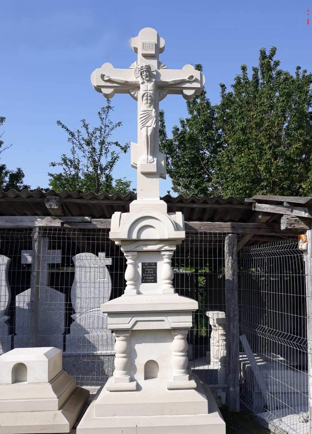 Alege o răstignire sau o troiță din piatră realizată la comandă, sculptată cu grijă și respect pentru detaliu. Fiecare lucrare este unică, o expresie a credinței și a tradiției românești transmise din generație în generație.